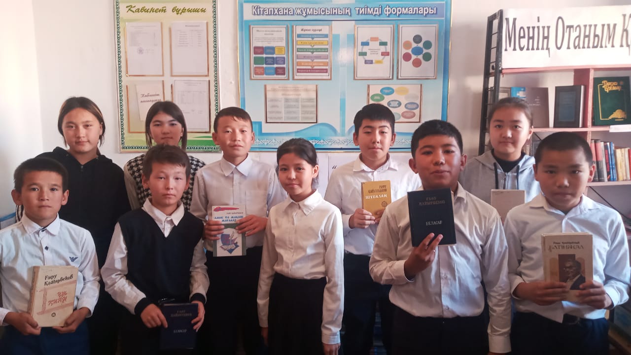 "Қ.Қайдосов атындағы жалпы білім беретін мектебі" КММ нің кітапханашысының ұйымдастырумен 6 сынып оқушылары Жыр дүлділі Ғафу Қайырбековтың 95 жылдығына орай кітап көрме шығарды